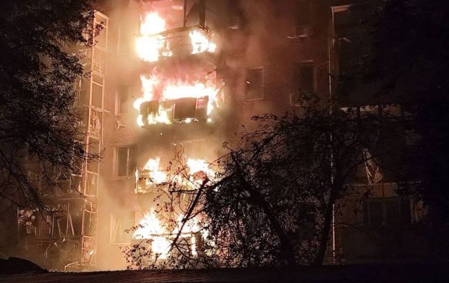 Повідомляється, що під час атаки по Ніжину російські БпЛА влучили в один із логістичних об’єктів та багатоповерховий житловий будинок.